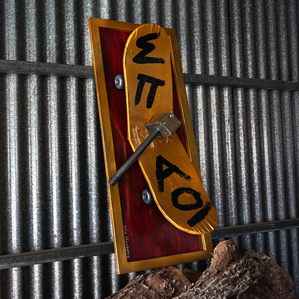 Ξύλινο ταμπλό, skateboard, μεταλλικά στοιχεία, ακρυλικα χρώματα.