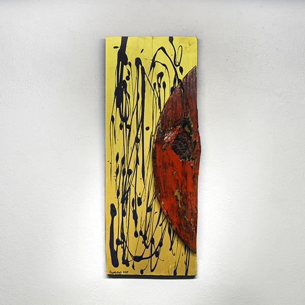 Ξύλινο ταμπλό, ξύλινο θραύσμα, ακρυλικά χρώματα.